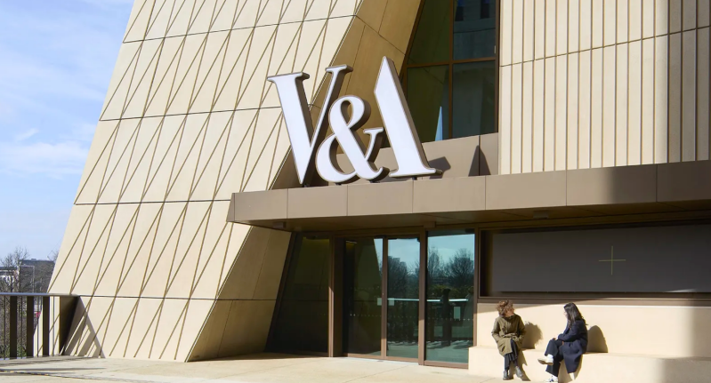 Architecturally, the building immediately stands out. Designed by Dublin-based studio O’Donnell + Tuomey, the museum features a distinctive façade made up of hundreds of precast concrete panels inspired by the V&A logo. Terraces and open spaces are woven into the structure, allowing visitors to move between galleries and outdoor viewpoints while taking in views across the Olympic Park.